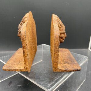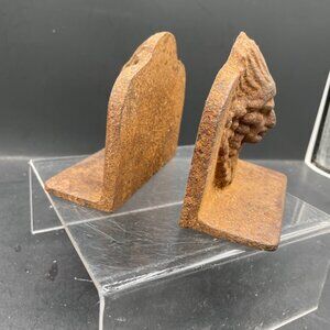 Pair of Cast Iron Indian Chief Bust Book Ends Cast Iron Indian Bookends