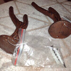 Pair of Cast Iron Twig Branch Wall Hooks Rustic Cabin Decor