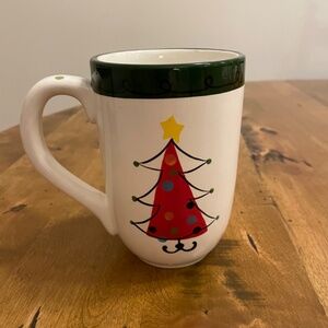 Pair of cute ceramic Christmas mugs with modern Christmas trees and contrasting trim.