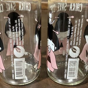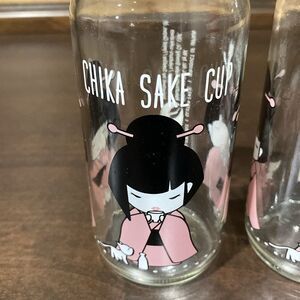 Pair of Chika Sake Cups Girl and Puppy Glass Container
