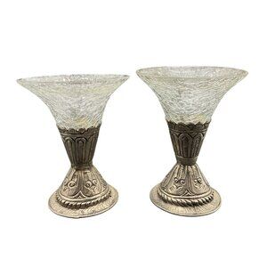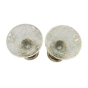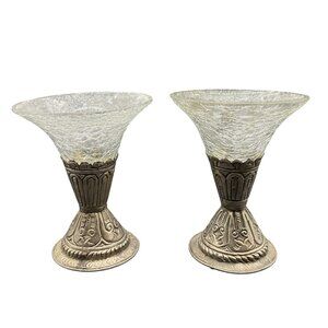 Pair of Crackle Glass with Metal base Goblets or Candle Holders 6"H x 5"D
