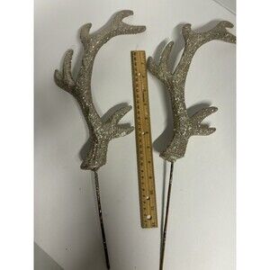 Pair of Gold Glitter Floral Pick Deer Antlers Christmas ornaments decor crafts