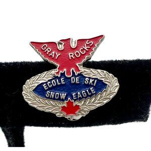 Add some cool factor to your gear with this pair of Gray Rocks, Quebec Canada ski pins. One pin featuring the phrase "Go for it" and the other "Snow Eagle.
