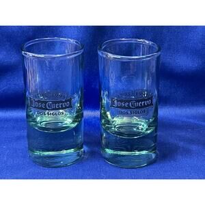 Pair of Green Tinted Glass Jose Cuervo Shot Glass