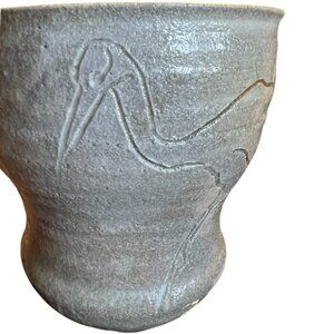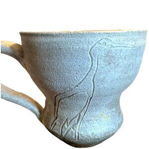 Pair of Handcrafted Pottery Mugs w Etched Cranes Anne Meyer