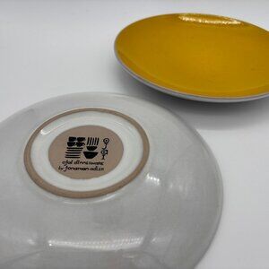 Rare. Two yellow side plates from the Jonathan Adler Ojai collection, circa 2009. Used, but without chips or obvious scratches. This glaze has some natural irregularities, which I've tried to show in the photos. Diameter of 8.25".