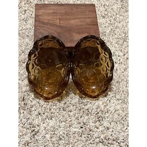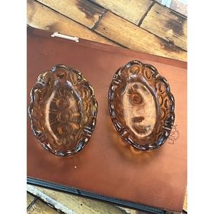 Pair of L E Smith Amber Oval Ashtrays Soap Dish Moon and Stars