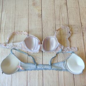 Pretty pair of La Vie en Rose lace overlay bras sz 34C