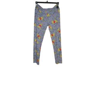 2 Women's One Size LuLaRoe Purple Pooh Bear Leggings and Purple and pink striped leggings
