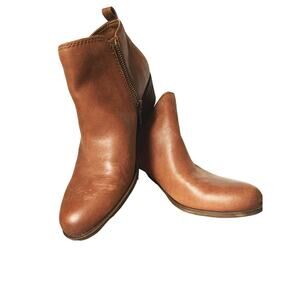 Pair of Lucky Brand Brown Leather Upper Booties 2 Side Zip Size 8.5 Floor Sample Ankle Boots