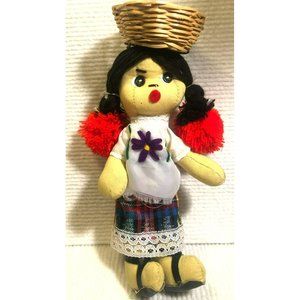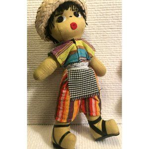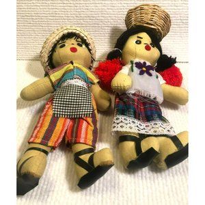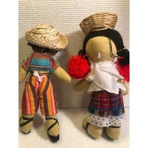 Pair of Mexican Folk Art Boy & Girl Handcrafted Cloth Dolls, Collectible