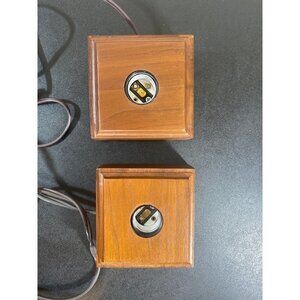 Pair of Minimalist Cube Square Wooden Block Desk Table Lamp 2 MCM WORKING