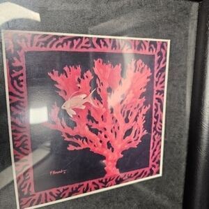 Pair of Original watercolors of red coral framed and signed by artist Peter Bren