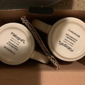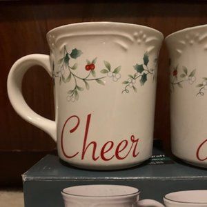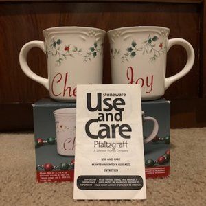 Pair of Pfaltzgraff WINTERBERRY Sentiment Mugs, Cheer and Joy, in Original Box