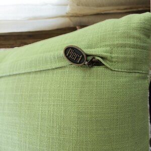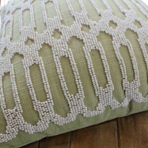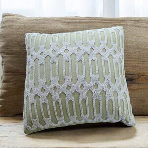 Pair of Pier 1 One Green Accent Pillow W White Glass Beads Geometric 12” Square