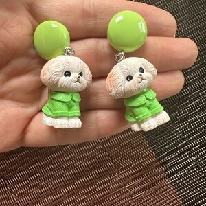 Pair of Playful Cute Cartoon Puppy Dog Resin Earrings