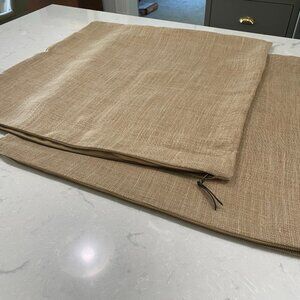 This pair of Belgian linen pillow covers measure 24" each. Listed as Harvest Gold and leans lighter in color. Lightly used. Excellent condition. Adds a nice neutral color and texture and mixes well with other patterned or plain covers. Inserts not included.