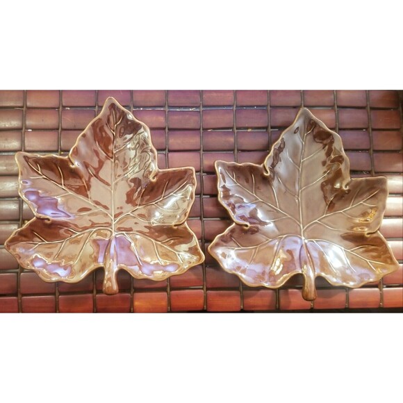 Pair of Pottery Barn Dark Brown Maple Leaf Salad Plates 11"x10" Retired