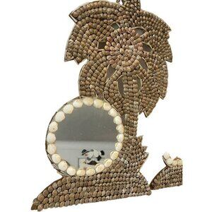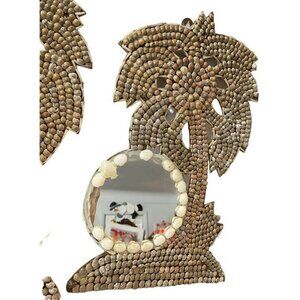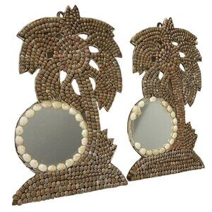 Pair of Seashell Mirrors Palm Tree 17 x 12" Bathroom Tiki Decor