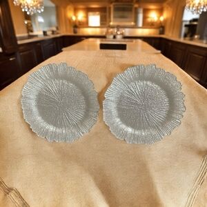 Pair of Silver Glass Reef Charger Plate Textured Holiday Platters Dinnerware