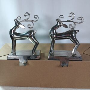 Pair of Silver Reindeer Stocking Holders Mantelpiece Christmas Decor Metal