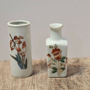 Pair of Small 3.5 Inch Chinese Floral Porcelain Vases
