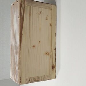 Adorable and versatile solid wood decor/storage boxes. These boxes are so cute with plotted plants, Candles, little milk jars to hold fresh cut flowers, or could be used for counter top storage for your mail, or keys. So many different uses. Light stain with white distressing. Cute farm house/ cottage feel.