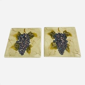 Pair of Tea Tiles Cabernet Tabletops Unlimited Hand Painted Ceramic Trivet Set