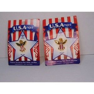 2 Pins U.S.Angel - Made in the USA Tac Pin, Hat Pin, Lapel Pin Cute angel with American Flag Dress. Hand Enameled, 18Kt. Gold Finish