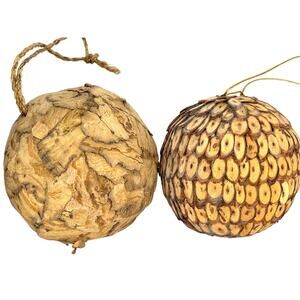 Pair of Unique Wood Slice Ball Ornaments 4" Natural Material Rustic Sustainable
