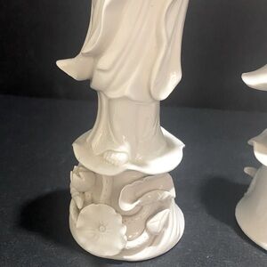 Pair of VTG Blanc de Chine Guanyin Statues Porcelain Figurines Dehua Style READ