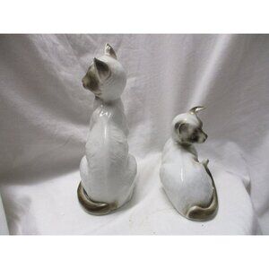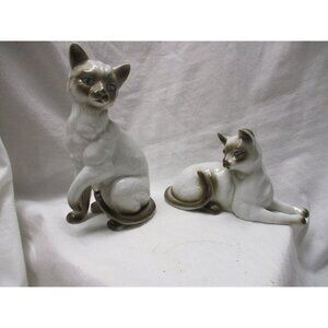 Vintage Porcelain Siamese cat figurines, set of two. Excellent vintage condition without issues. Measures 7" L x 4"T x 3" W for the laying down cat, 7" T x 4"L x 3" W for the sitting cat, Very detailed