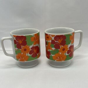 Pair of Vintage Bright Floral Footed Mugs