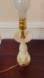 Pair of Vintage Cream Ceramic and Brass Table Lamps: Classic Mid Century Style