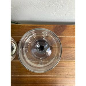 Pair of Vintage Etched Grapevine Wine Glasses with Purple Crafted Stems