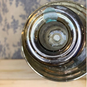 Please view photos carefully for condition. Of note: lots of patina, some remnants of candle wax