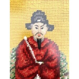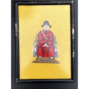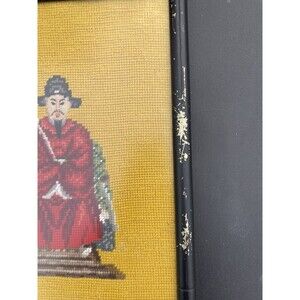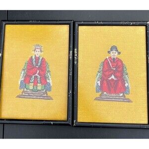 Pair of Vintage Framed Needlepoint 1960’s Chinese Emperor and Empress
