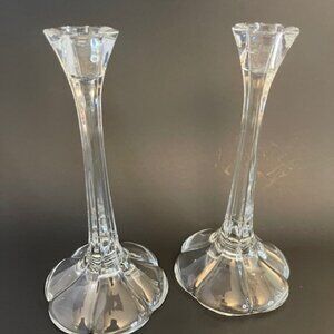 Pair of Vintage Glass Candlesticks – 9.75" Tall, Tulip Design