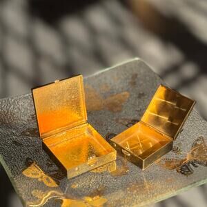Pair of Vintage Gold Tone & Enamel Floral Pill Boxes