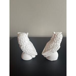 Pair of Vintage Italian Alabaster Snow Owl Sculptures - White Salt Stone