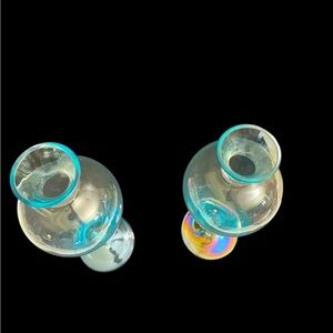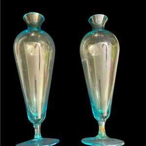 2 Vintage Mid-Century Modern Light Blue Art Glass Vase Footed