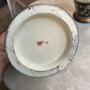 I dont know much about the provenance of these, but they were purchased in the 80s in Hong Kong by a family member. There is a signature on the bottom and they are a matching pair. They are approximately 7.5 inches tall and about 4 inches at the widest part. Theyre nice vases and very pretty with pink orange and yellow flowers with green leaves. Also some blue flowers and stems. Overall, they are in very nice shape no major issues. Some of the guilt has rubbed off on the top of one of the vases, but its only in a small spot and theres a small imperfection on the base of one of the other bases. Overall, a very nice pair.