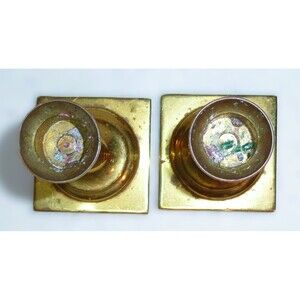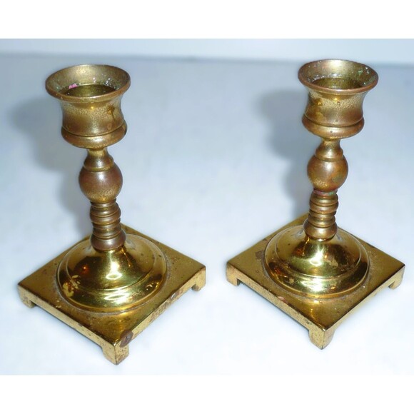 Pair of Vintage Solid Brass Seiden Candlesticks 5" Tall Square Base Needs Polish