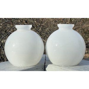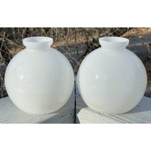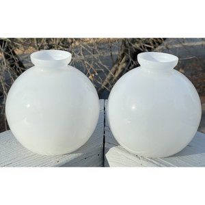 Pair of Vintage White Glass Mid-Century Modern Lamp Shades Round Modernist