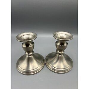 Pair of Web pewter weighted candlesticks. 4 1/4 inches tall. Understated masculi