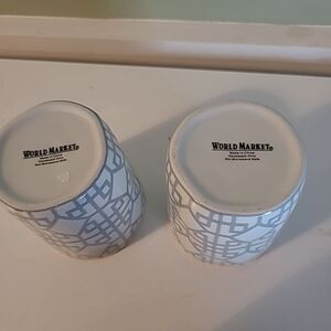 Pre-owned in good condition. White porcelain cupsxwith a red floral bull pattern and gold trim around the rim.