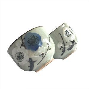 Excellent pre-owned condition! Pair of (2) speckled gray stoneware sake or tea cups painted in a delicate blue and white floral pattern. Unmarked, but in the style of Otagiri stoneware. Could also be used for storing rings or small trinkets. See photos for measurements. Smoke-free home!