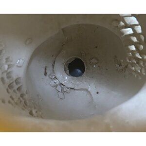 Note: There is a lamp hole in each that was apparently there from manufacture as hole is glazed. So, although we currently have the pair without lamp parts, the pieces may have started as or could become gorgeous lamps as another option for display