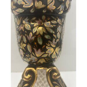 Pair of gilded Rococo majolica decor ewers lamps reticulated hand painted Italy