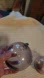 Pair of hand-made purple/pink glass Xmas ornaments with holes